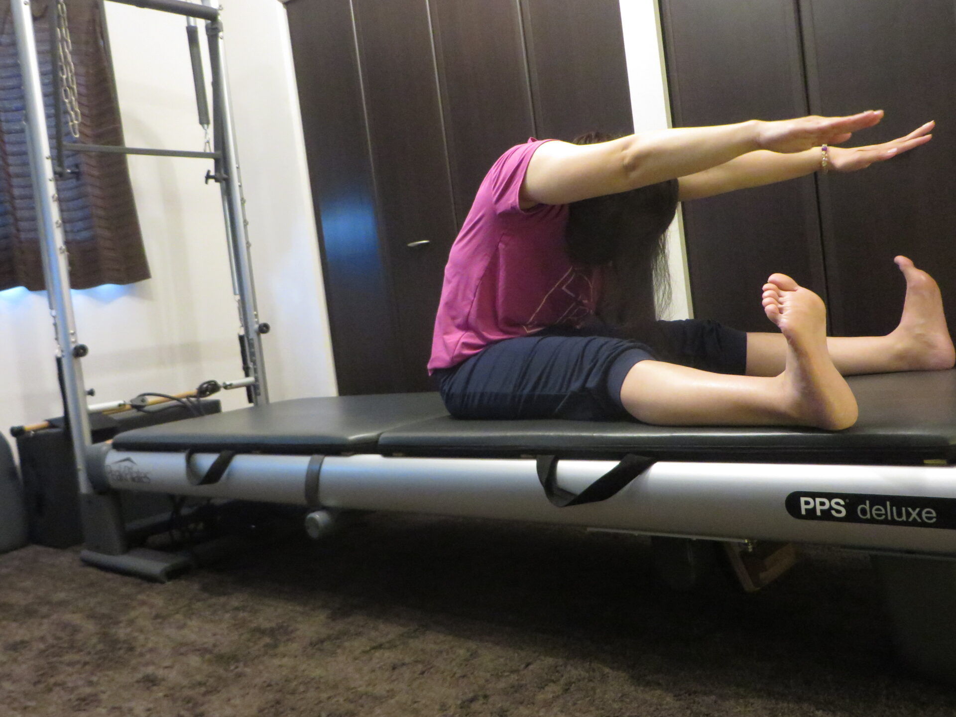 お尻の引き締めもピラティスマシンを使って